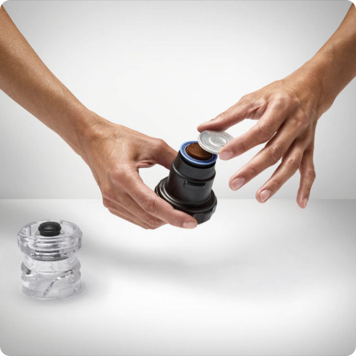 During our explorations and research, we found that the simple act of piercing the capsule lid creates a pressure build-up, which results in a richer brew and crema.